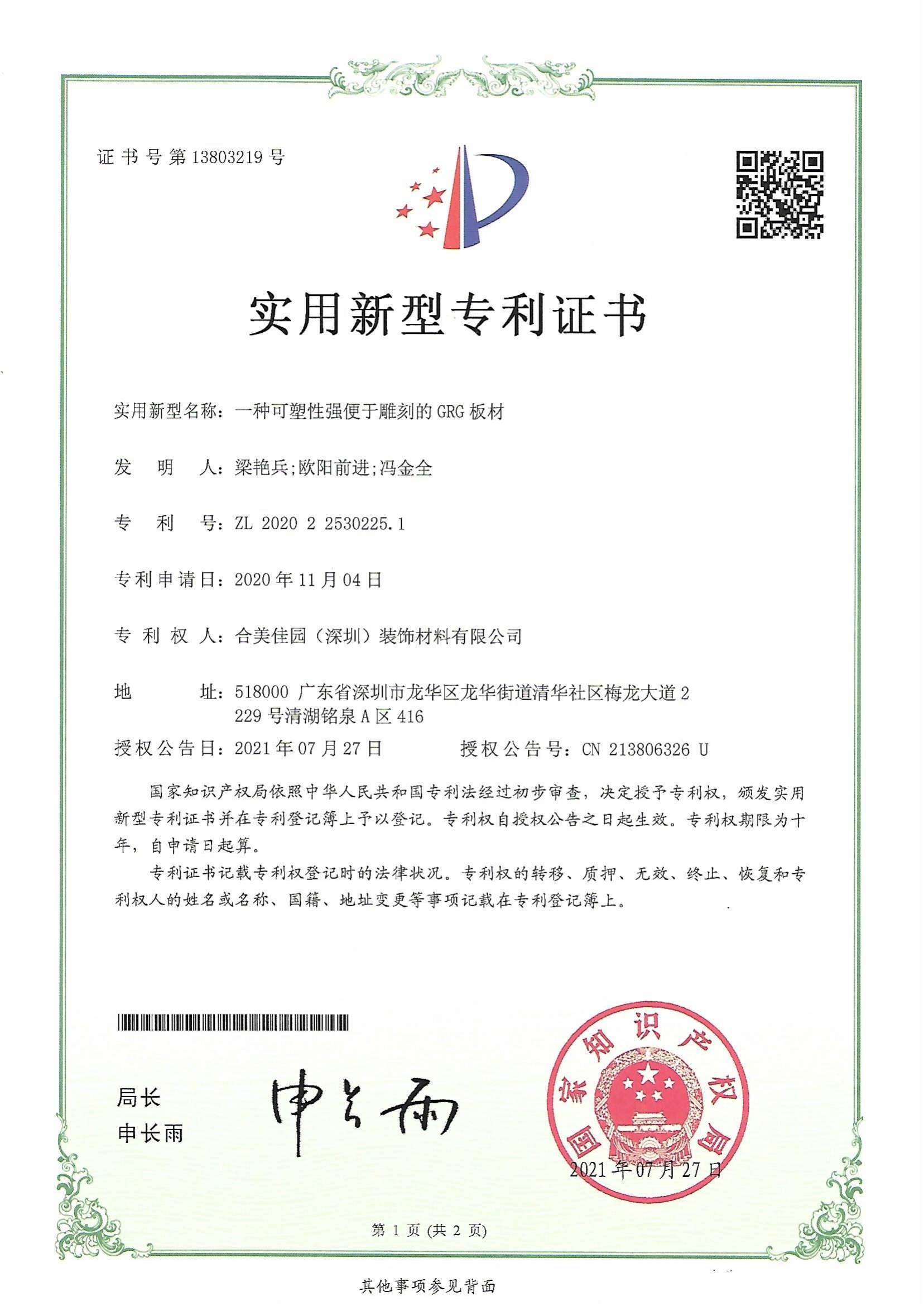 自有专利及相关资质证书,产品质量有保证,产品不仅具有高强轻质、Al级防火、绿色环保、节能低碳、抗菌耐腐、防香防潮防虫姓、湿暖保温等良好的物理性能,而且拥有隔声/吸声/扩散/反射等优良的声学性能,同时造型丰富任意、可镂空/浮雕、可平面/单曲二维/双曲三维等立体构造,支持各种造型定制
